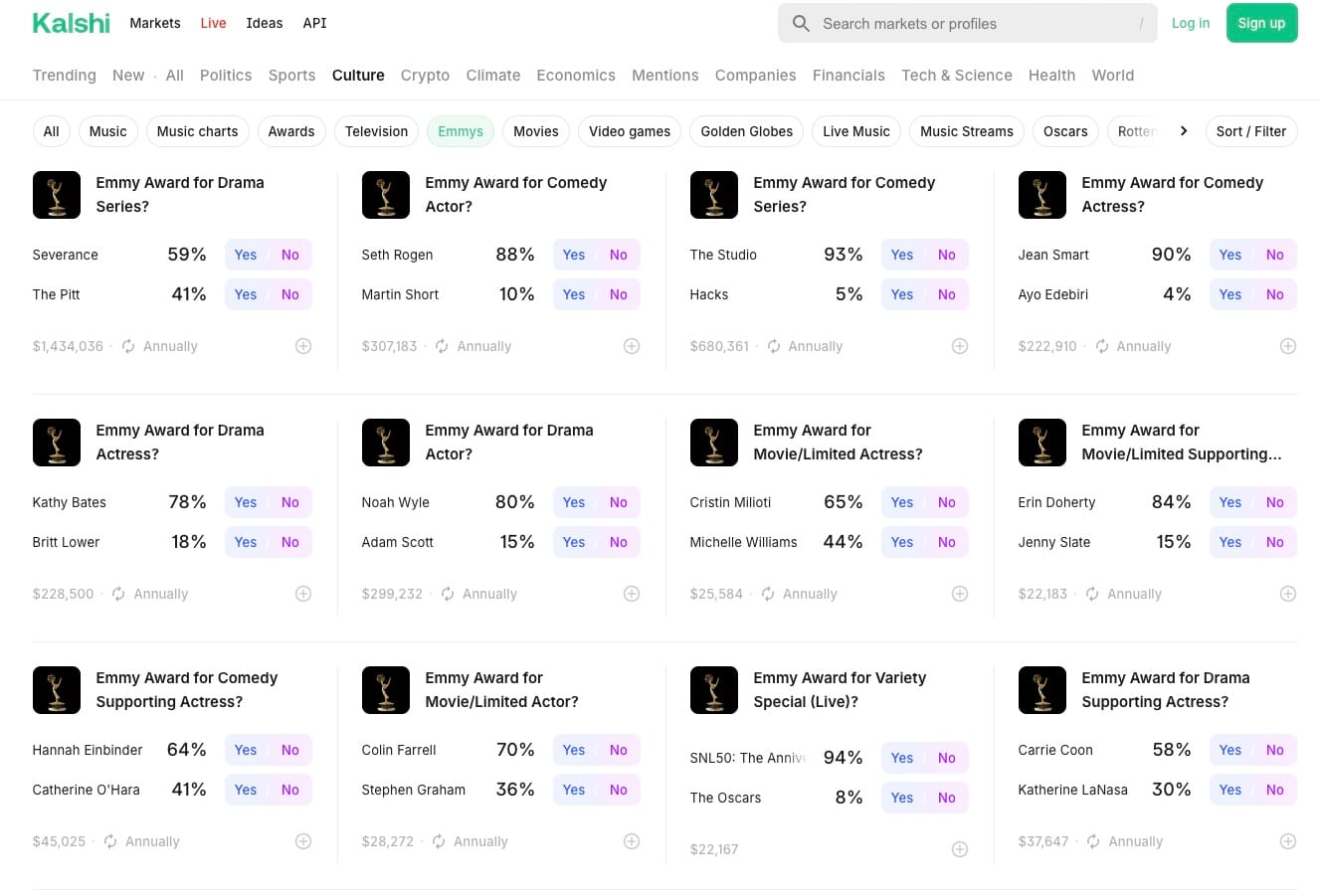Of the 24 Emmy predictions, Kalshi's forecasters scored: