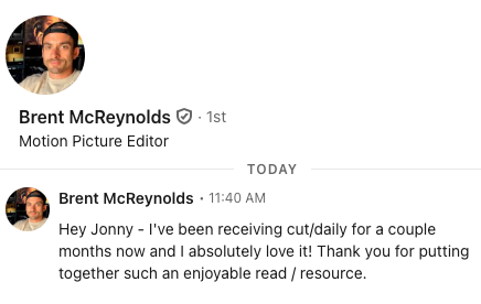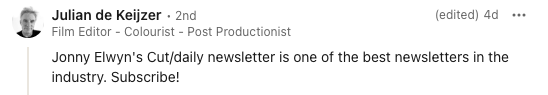 Just signed up to this great newsletter. Curated articles and editing insights straight into my inbox every day. Exactly what I needed 😍 https://t.co/ER3vTMk485